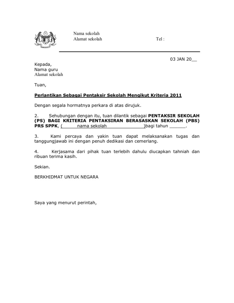 Surat rasmi tawaran kerja dari majikan selangor t. Contoh surat lantikan kerja surat perlantikan kps mohcetakbaju com contoh surat lamaran. CONTOH SURAT LANTIKAN PENTAKSIR PBS SEKOLAH.